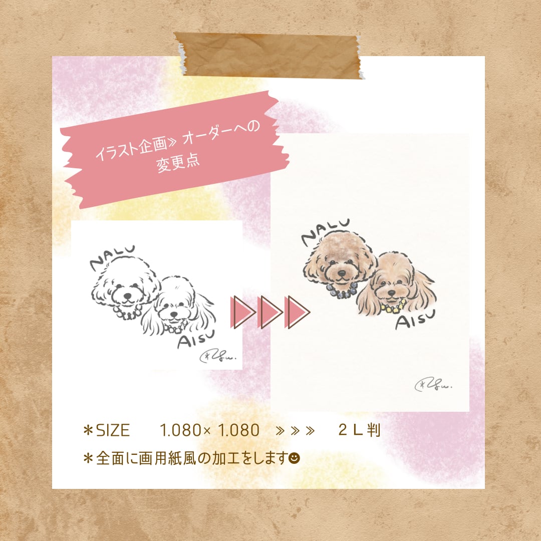 ・描かせていただいたお写真を元に、着彩をさせていただきますが、【忠実に再現するイラストではない】事をご了承下さい。